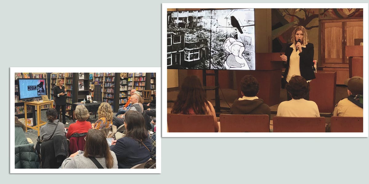 And then there are questions. About my research. About the people I spoke with and the buildings that spoke to me. About why artists are at the forefront of the resistance (So. Many. Reasons.). About the historic photos and about my drawings. And why those colors? About my family. “How does your mom feel about the book?”